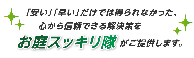 その中で「お庭スッキリ隊」が特別と⾔えるのは、安⼼を⽀える仕組みにあります。