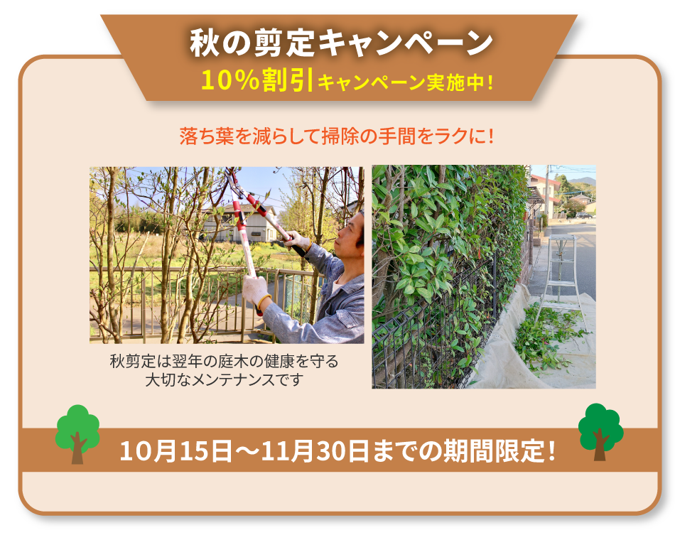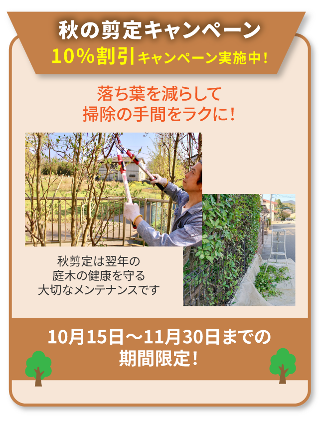 軽い枝切りや整枝など、⼩規模なお⼿⼊れ。ちょっと伸びた枝を整える程度の簡易作業です。