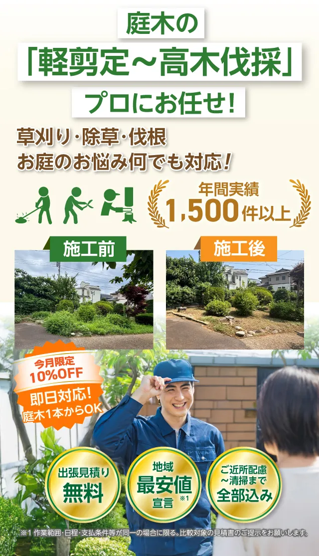 庭⽊の⼿⼊れを本当に安⼼して任せられるかどうかは、
